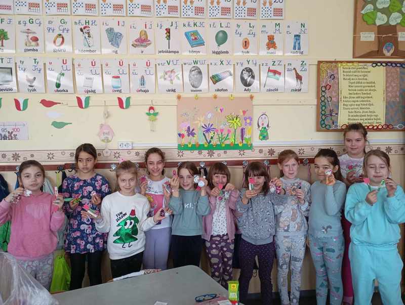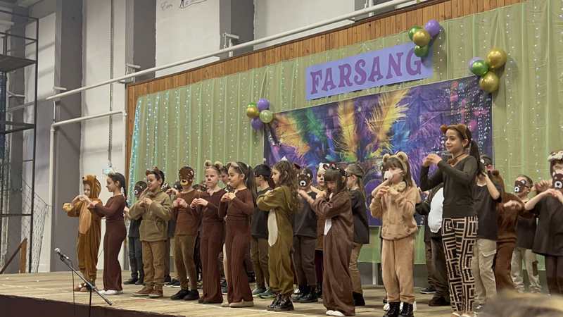 Ez a hónap a farsang jegyében telt. A maszkanapon mókás álarcokat viselhettünk, a bálon mackójelmezbe bújtunk, úgy jártuk a medvetáncot. Nagy sikert arattunk, megérte a sok vidám próba.