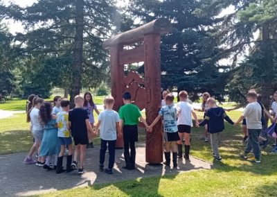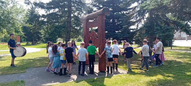 A Nemzeti Összetartozás Napja június 4-én van. Előző nap délelőtt Maier Reimond tanár úr a 2. b osztállyal elsétált a KRESZ parkban található emlékműhöz, körbevették és kezdődhetett a tánc, tanár úr és Barna Zsombor 8. b osztályos tanulók szolgáltatták a zenét, a kicsik csodálatosan énekeltek hozzá, a járkókelők nagy gyönyörűségére. A Nemzetek Tánca méltó volt a másnapi megemlékezéshez. Összetartozunk!