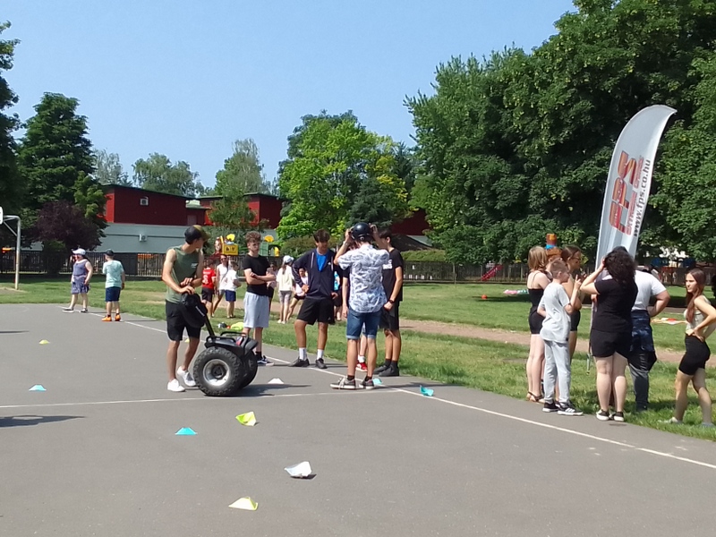 A felsősök sem maradtak izgalmak nélkül. Ők a nap során kipróbálhatták a lézerharcot, a rodeó bikát, a terepsegway-t és az óriás csúszdát is. A sportosabbak ügyességi pályán, floorballban vagy dartsfociban mérhették össze tudásukat.