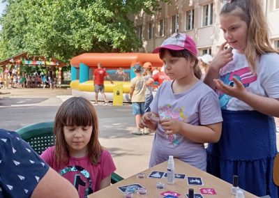 Az alsósok arcára mosolyt csalt a színes arcfestés, a csillámtetoválás és a vidám táncház is. A legkisebbek nagy kedvence volt az ugrálóvár, a lovagló pónik és a söprögető nevű ügyességi kihívás. A buborékfoci hatalmas nevetésekkel telt, nem is csoda, hiszen a gyerekek úgy pattogtak benne, mint a labdák.