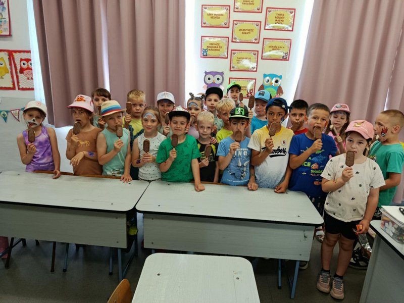 Tanulóink egy kis hűsítő meglepetésben részesültek: minden gyermek ajándékjégkrémet kapott. A nagy melegben különösen jólesett ez a finomság.