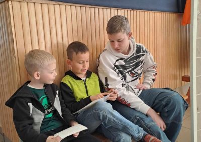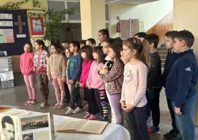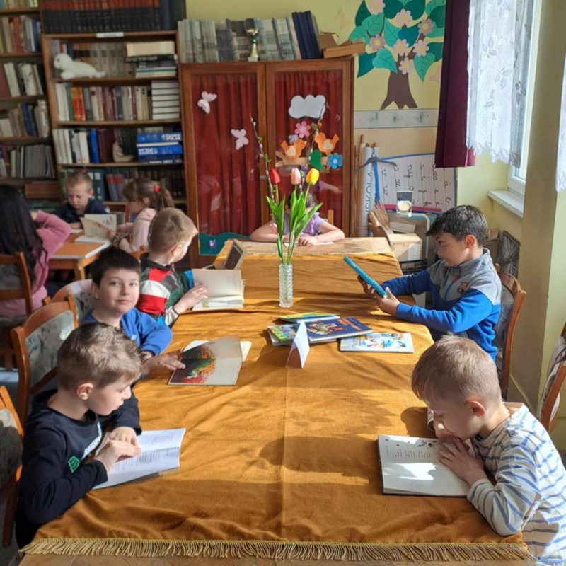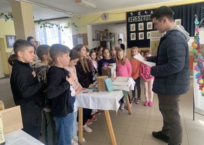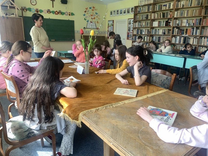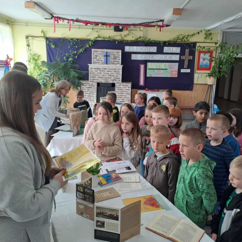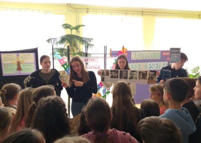 A 2. emeleten található könyvtárban Lengyel Pannika tanító néni fogadta az olvasni vágyó gyerekeket, és a célunk, hogy ezen a napon mindenki megismerkedjen legalább egy verssel, remélhetőleg megvalósult.