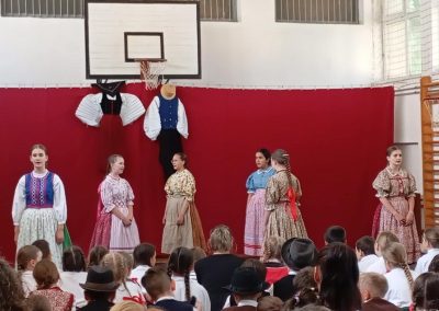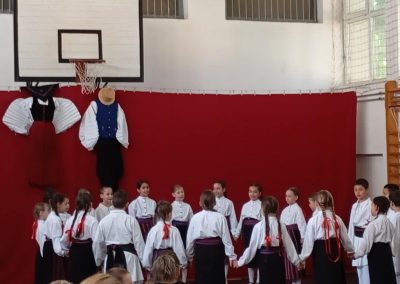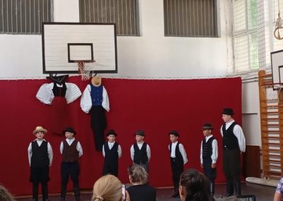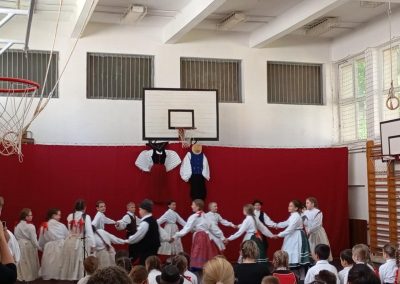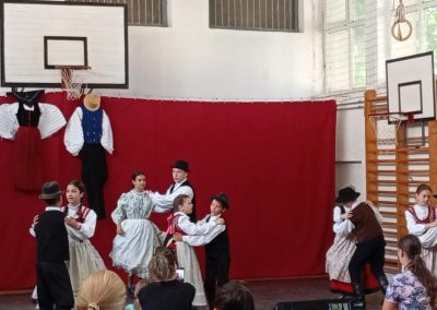 Iskolánkban hagyománnyá vált, hogy a néptánc tanszak növendékeinek év végi vizsgája egyet jelent a csoportok művészeti gálájával. A szívet, lelket, szemet gyönyörködtető műsorszámok által a nézőközönség nemcsak a különböző tájegységek táncait figyelheti meg, hanem láthatja a koreográfiák mögött megbújó rengeteg munkát is: a felkészítő pedagógusokét és a gyermekekét egyaránt. Maier Reimond, Dr. Krupárné Rakaczki Anna és Veres Zoltán nap mint nap azon fáradoznak, hogy a választott művészeti ágon belül a legtöbbet hozzák ki a tanulókból. Fejlesztik mozgáskultúrájukat, átadják ismereteiket a jeles napokról, ünnepekről, kiegészítik ezeket népzenei és népdalismerettel, de ezeknél még sokkal többet tesznek: olyan közösségeket kovácsolnak, ahol a fiataloknak jó lenni, ahol barátságokat köthetnek, de jobban megismerhetik önmagukat is. Megtanulják elfogadni egymást, ráéreznek a csapatmunka örömére, arra, hogy együtt, összefogva, kart karba öltve nagy esély van arra, hogy elérjék céljaikat. Bizonyíték erre a számtalan fellépés, a – kivétel nélkül dobogós – versenyeredmény. Táncosaink számára azonban legnagyobb élmény a felszabadultság, a boldogság érzése, ami a mindennapjaik részévé vált. Ez az a fajta jó függőség, amitől sokan közülük bizonyára egy életen át sem tudnak majd megszabadulni.
