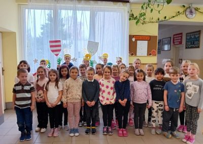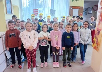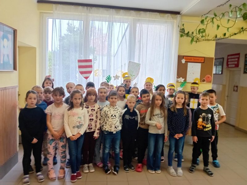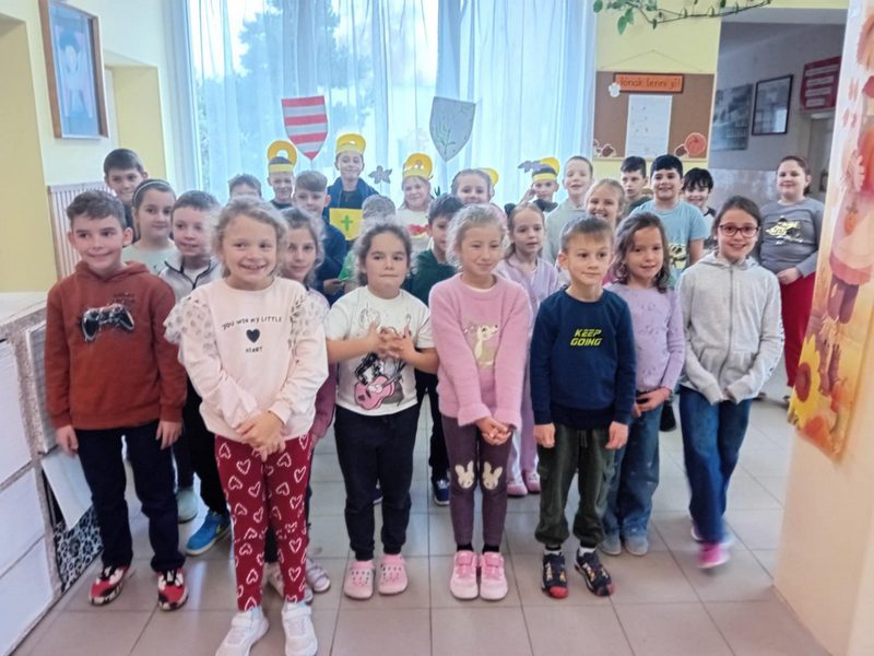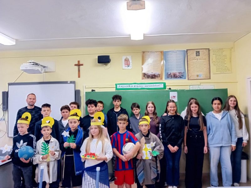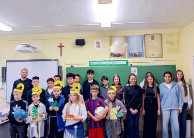 Fotózkodást szerveztünk, 4 fiúnk beöltözött a szenteket ábrázoló ruhákba, mellette Árpád-házi Szent Erzsébetet is megjelenítettük, hiszen most van az ünnepe. A fotók bizonyítják legjobban, hogy minden osztály élvezte a kis szereplést.