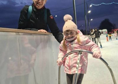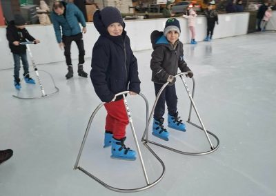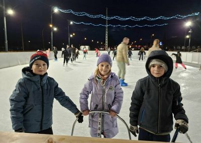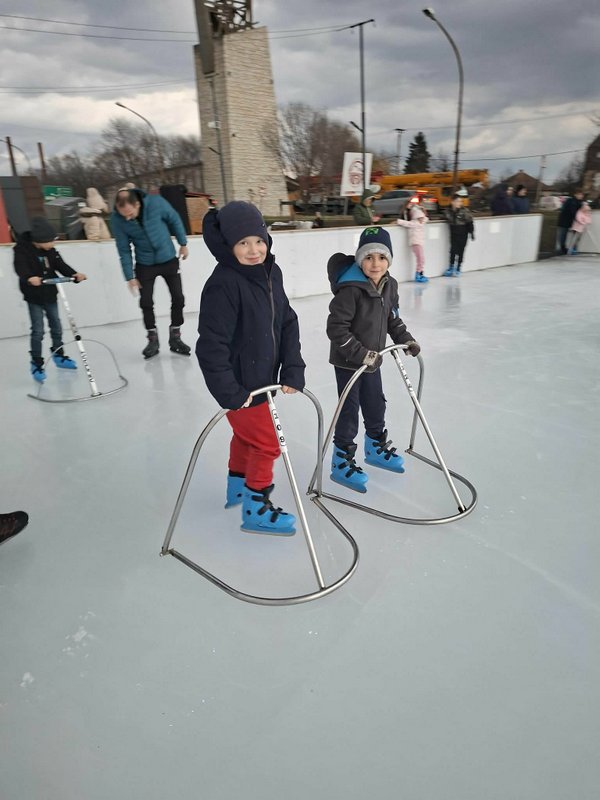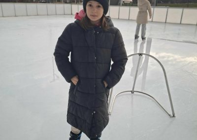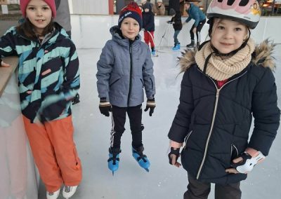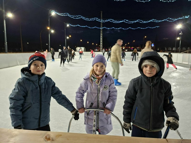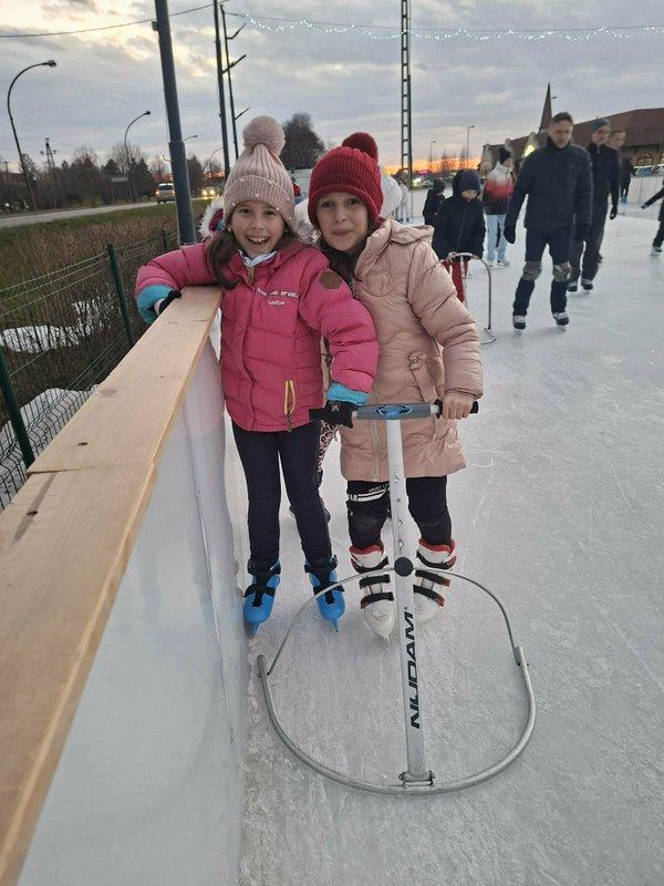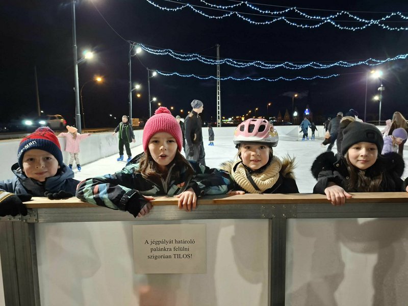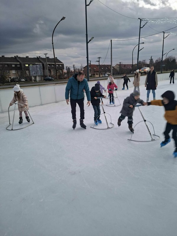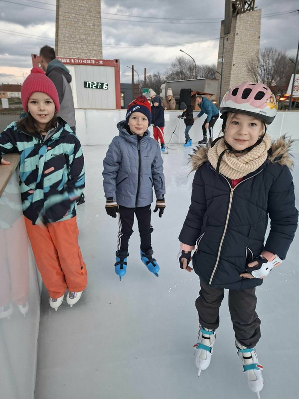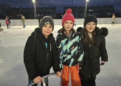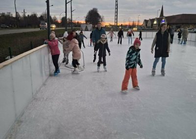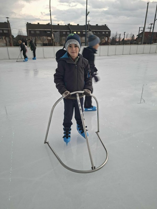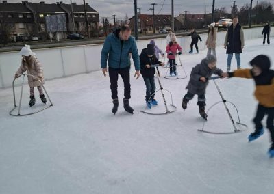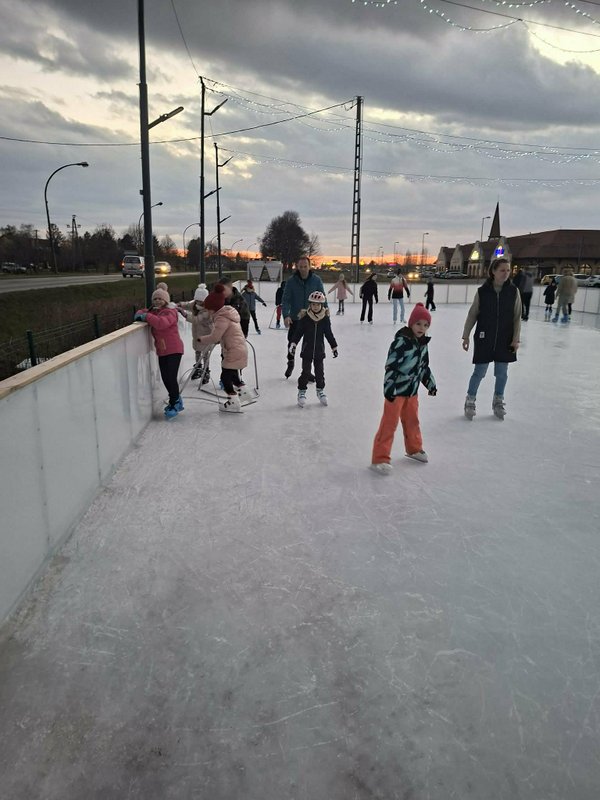 A gyerekek nagy lelkesedéssel húztak korcsolyát, és örömmel siklottak a jégen. Voltak, akik már magabiztosan köröztek, mások most próbálták ki először, de mindenki bátran és kitartóan gyakorolt.