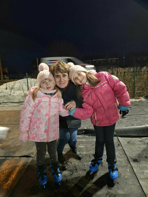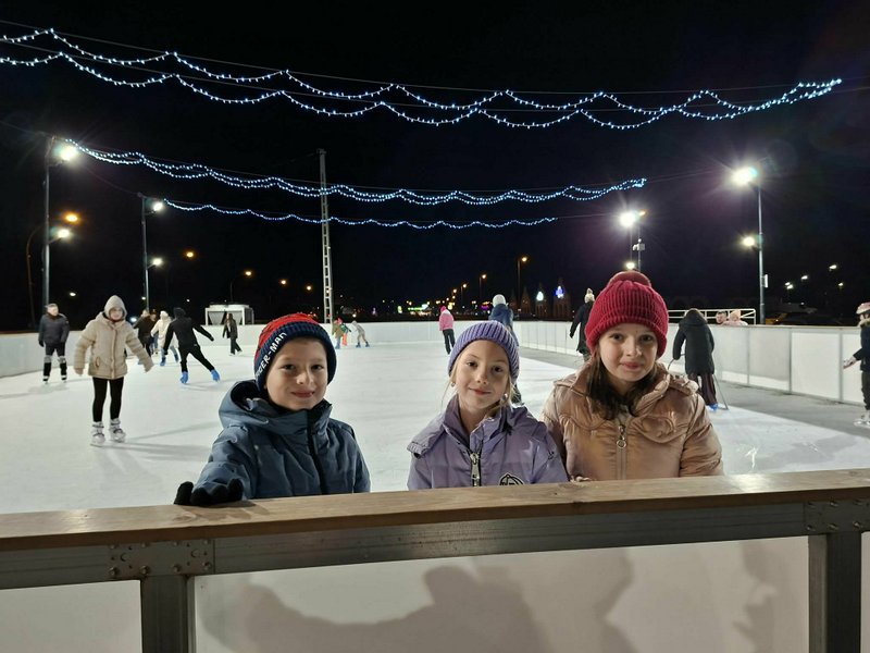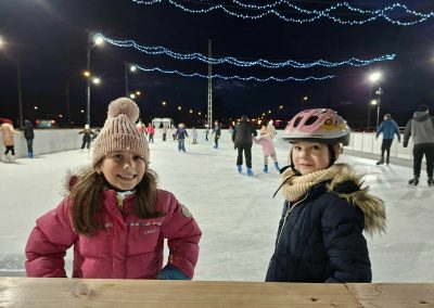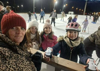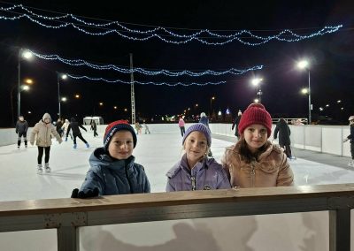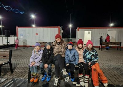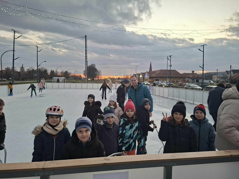 A 2. a osztály tanulói, testvérei és szüleik közösen vettek részt a vidám korcsolyázáson.